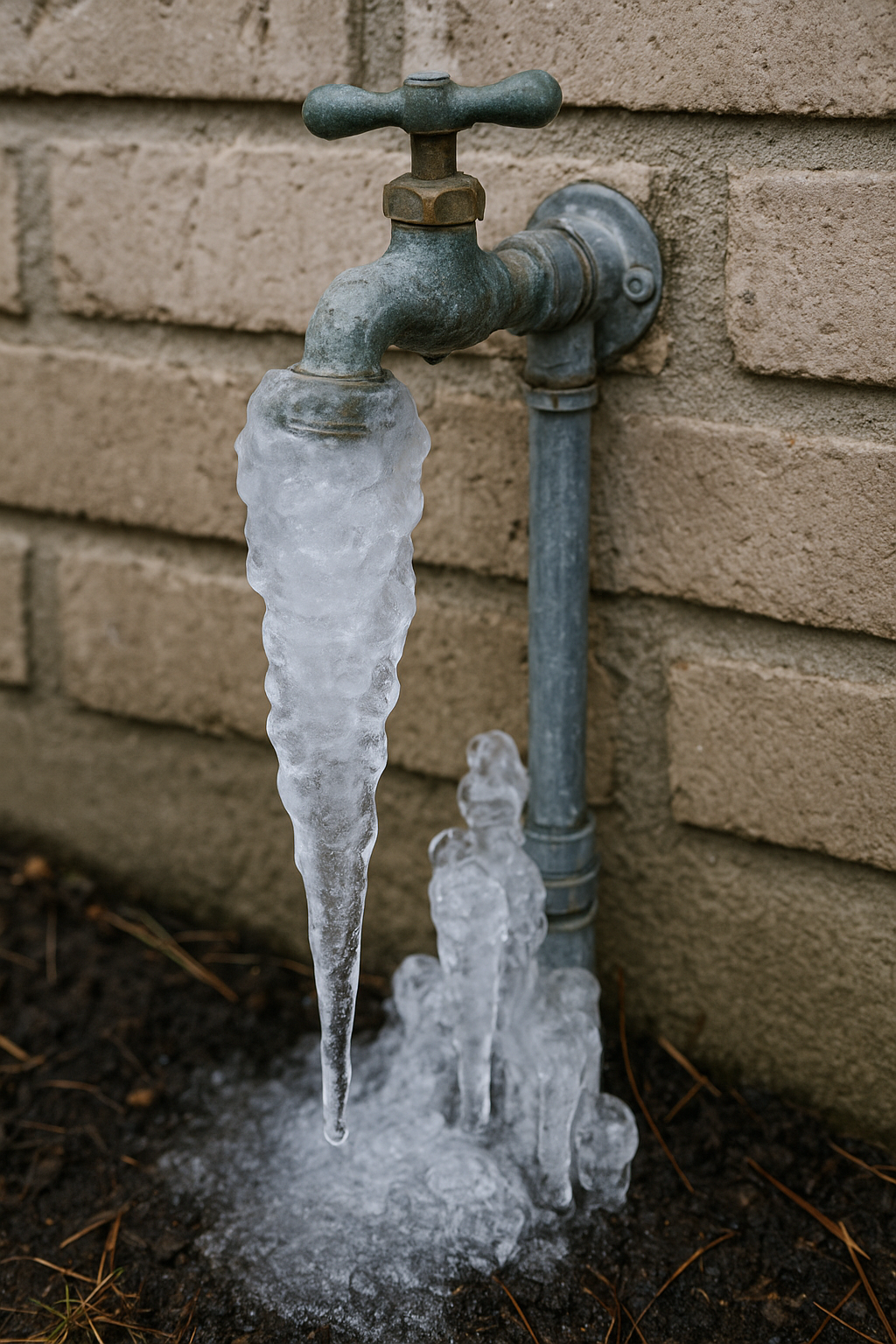 庭にある散水栓(地面に埋まっているタイプ)や立水栓(柱タイプ)も、地面に近いために地表の冷気の影響を受けやすく、蛇口やその周辺が凍結しやすい箇所です。
