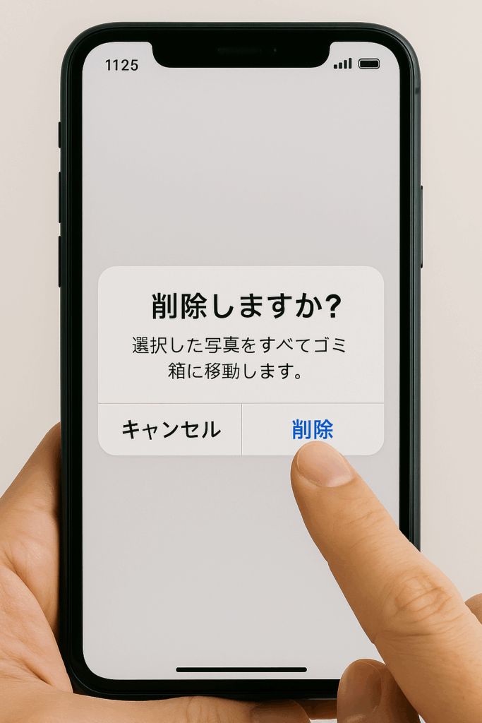 - 最終確認と同意: 「ゴミ箱に移動しますか?」といった確認メッセージが表示されます。内容をよく確認し、「ゴミ箱に移動」や「許可」などをタップすると、選択した写真が一括でゴミ箱に移動します。