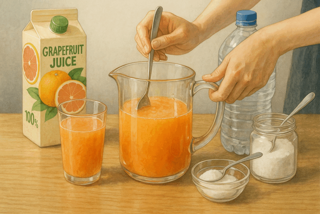 自家製グレープフルーツ経口補水液とは、熱中症の予防や回復時に必要な「水分・塩分・糖分」を手軽に摂取できる、家庭で作れる飲み物です。市販の経口補水液に比べて、材料が揃えば簡単に作れるうえ、グレープフルーツ特有の風味や栄養素も一緒に取り入れることができる点が大きな特徴です。