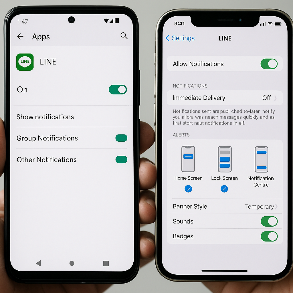 次に、端末側の通知設定も見逃せません。AndroidやiPhoneの「設定」→「アプリ」または「通知」からLINEを選択し、「通知の許可」が有効になっているか、「ポップアップ通知」や「ロック画面での通知」が制限されていないかを確認してください。特にAndroidでは通知が「サイレントモード」に分類されていると、通知は届いても画面に表示されなかったり音が鳴らなかったりすることがあります。