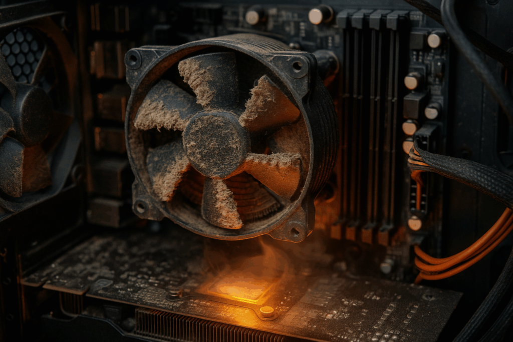 次に挙げられるのがほこりや汚れの堆積です。ケース内の空気を取り込みながら冷却を行うため、時間の経過とともに羽根や軸部分にほこりが溜まりやすくなります。これにより回転抵抗が増し、設計通りの回転数に到達できず、冷却性能が大きく低下します。