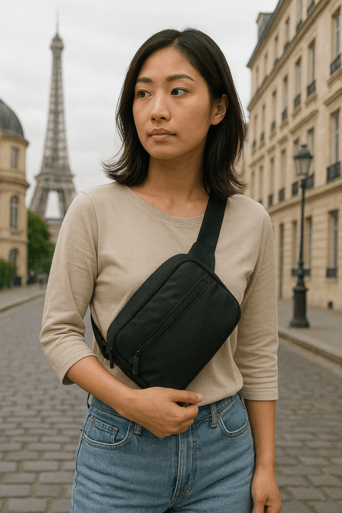 • 体に密着し隙間を作らない:体にフィットさせて装着するため、バッグと体の間に不要な隙間が生まれにくく、スリが手や道具を差し込む物理的な余地を与えません。