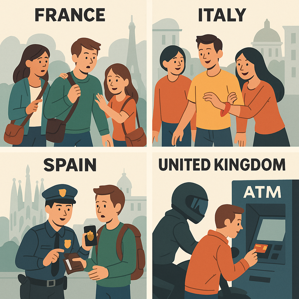 外務省の海外邦人援護統計によると、窃盗(スリ、置き引き、ひったくりを含む)は、長年にわたり海外で日本人が巻き込まれる犯罪の中で圧倒的に多くの割合を占めています。特に、歴史的な建造物や美しい街並みが魅力のヨーロッパの主要な観光都市では、スリの被害が日常的に多発しています。世界中から観光客が集まる場所は、その喧騒と人混みがスリにとって絶好の活動環境となるのです。以下に、特に被害報告の多い国と、具体的な注意すべき場所、そして彼らの手口をまとめました。