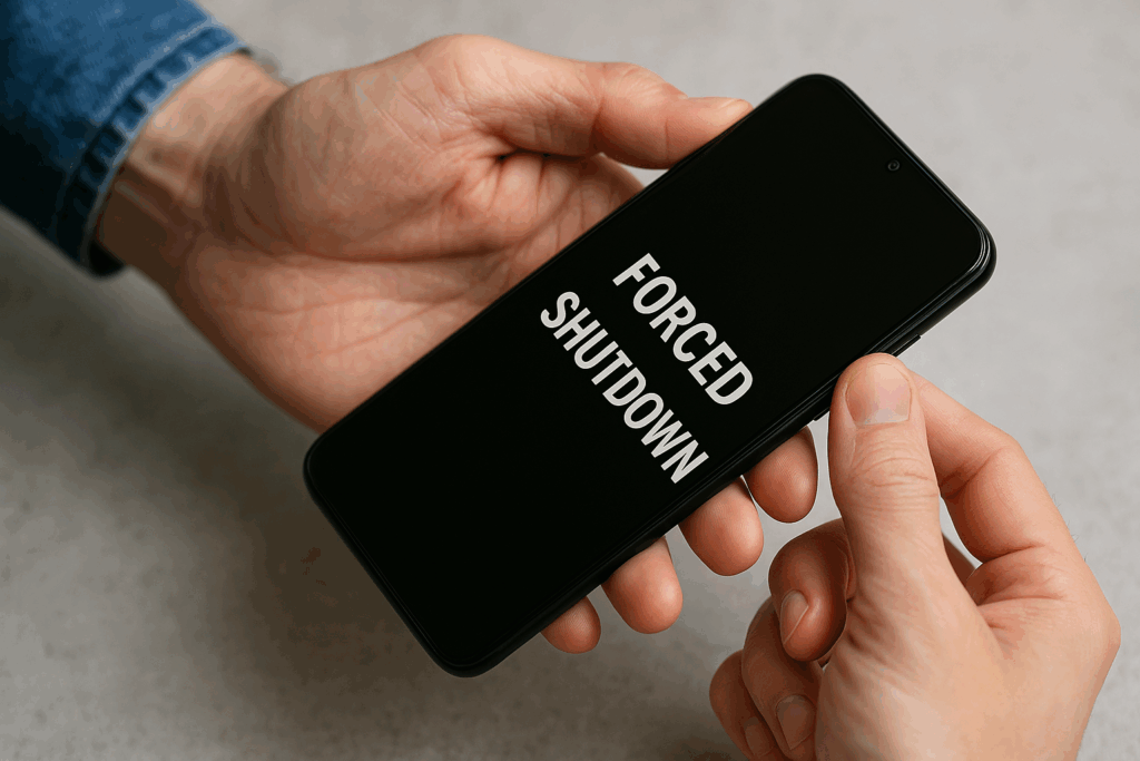画面が固まってタッチ操作が全く効かないときには、強制シャットダウンを実行するのが最も確実な方法です。Android端末では多くの場合、電源ボタンと音量上ボタン、あるいは電源ボタンと音量下ボタンを同時に長押しすることで強制終了できます。iPhoneの場合はモデルごとに操作手順が異なり、最新機種では「音量を上げる→音量を下げる→サイドボタン長押し」という順序で実行します。